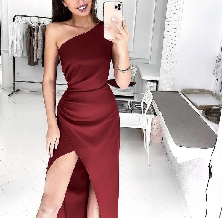 Elegant Sexy Slim-fit Shoulder Slit Satin Dress For Women