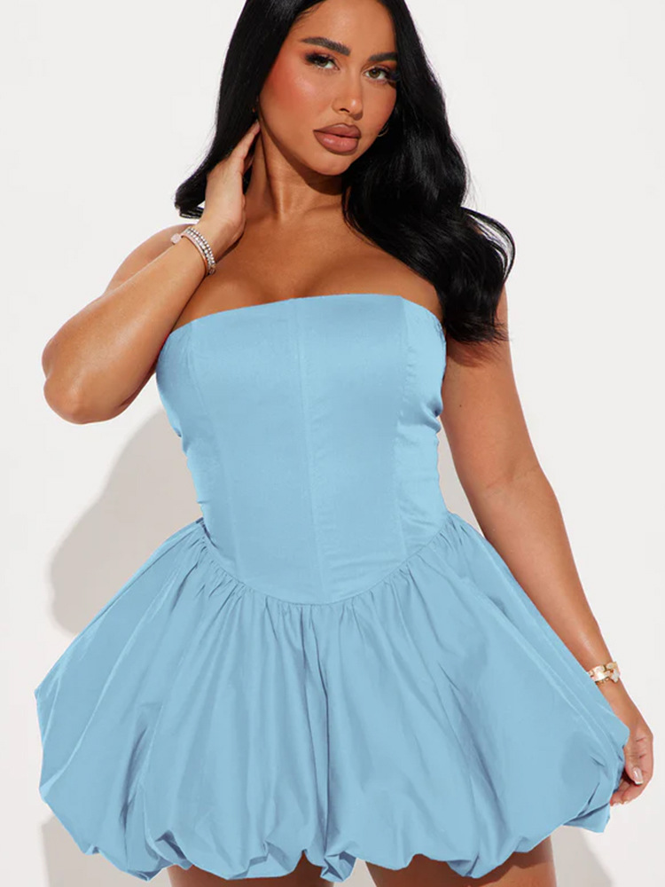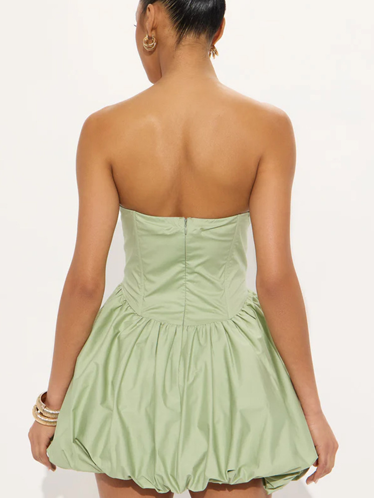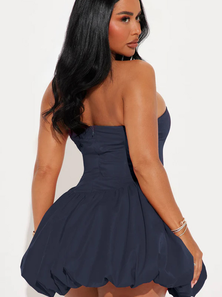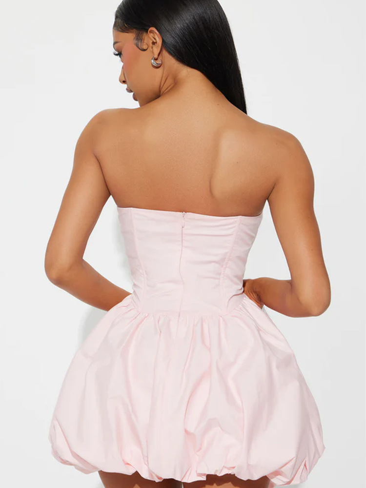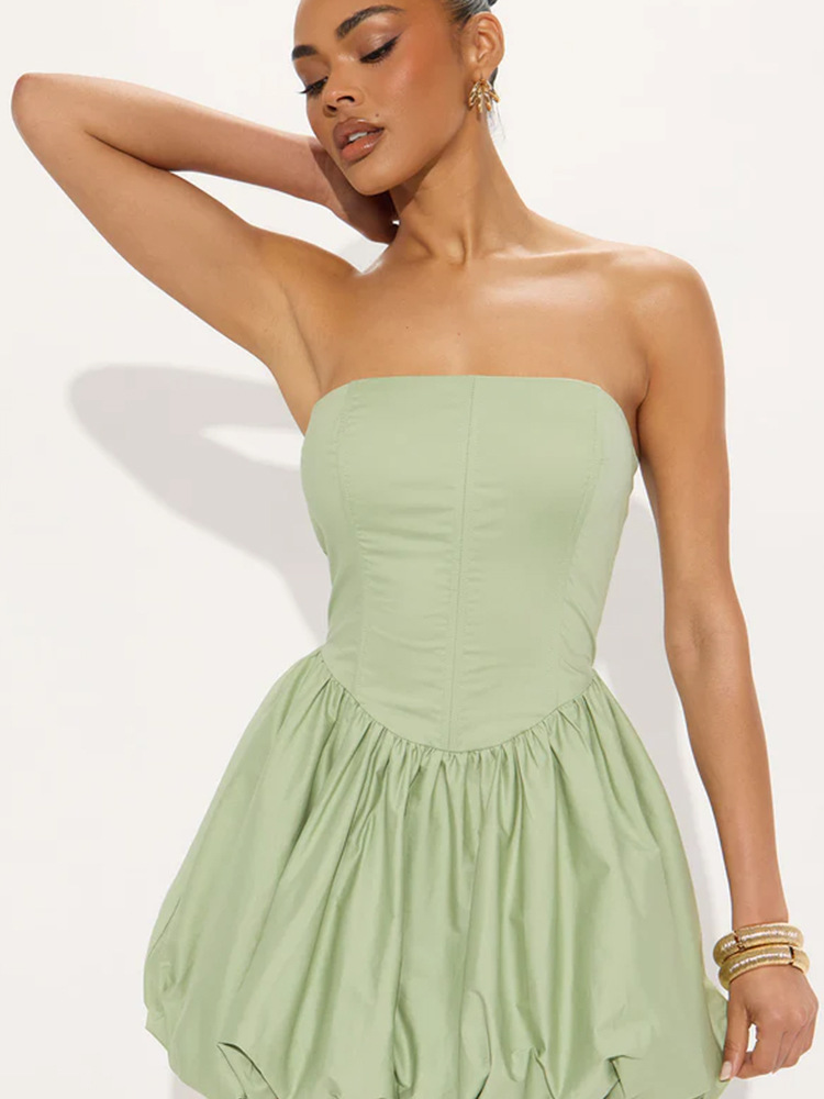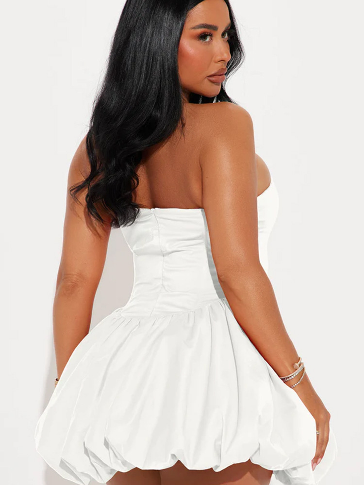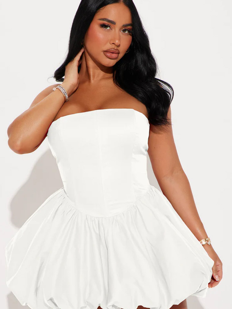 French Style Pure Design Sense Tube Top Cinched Waist Skirt