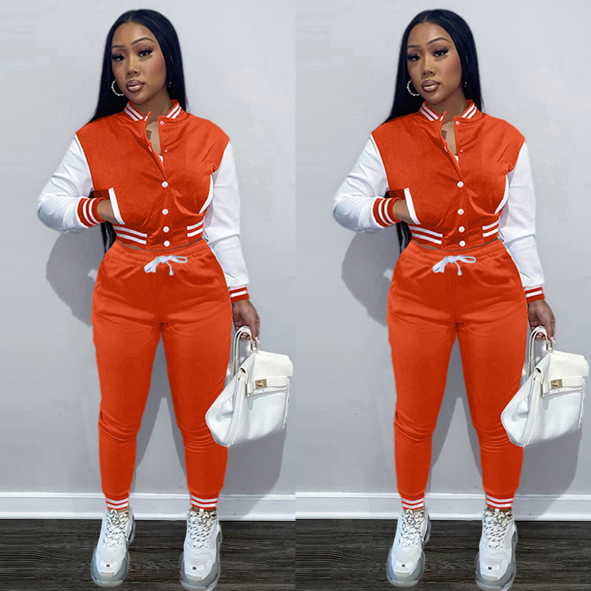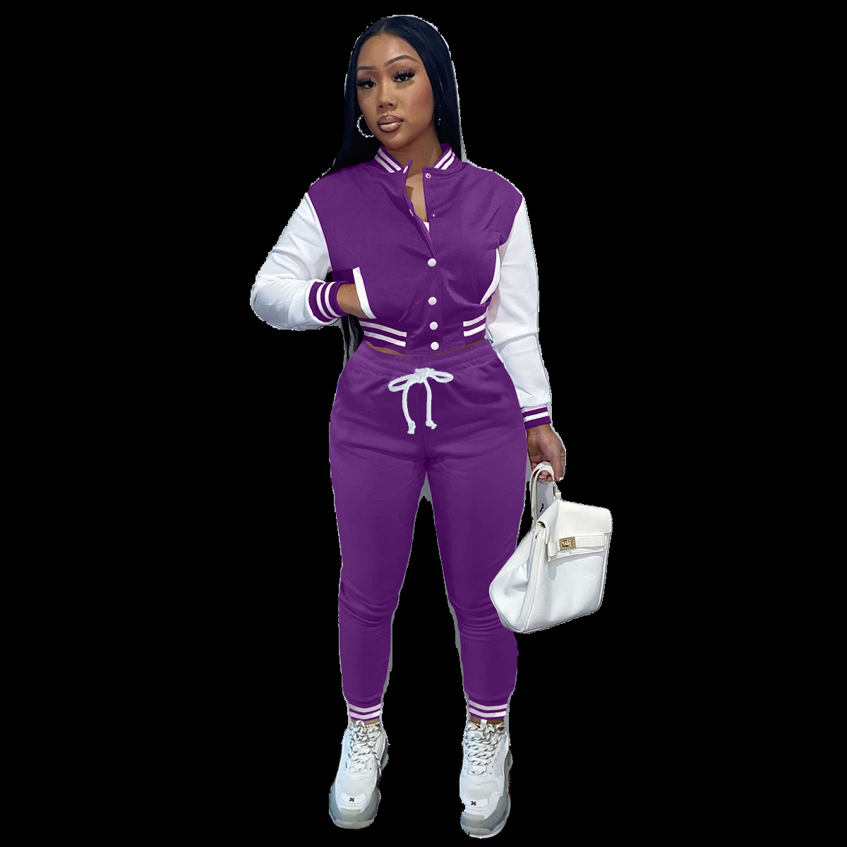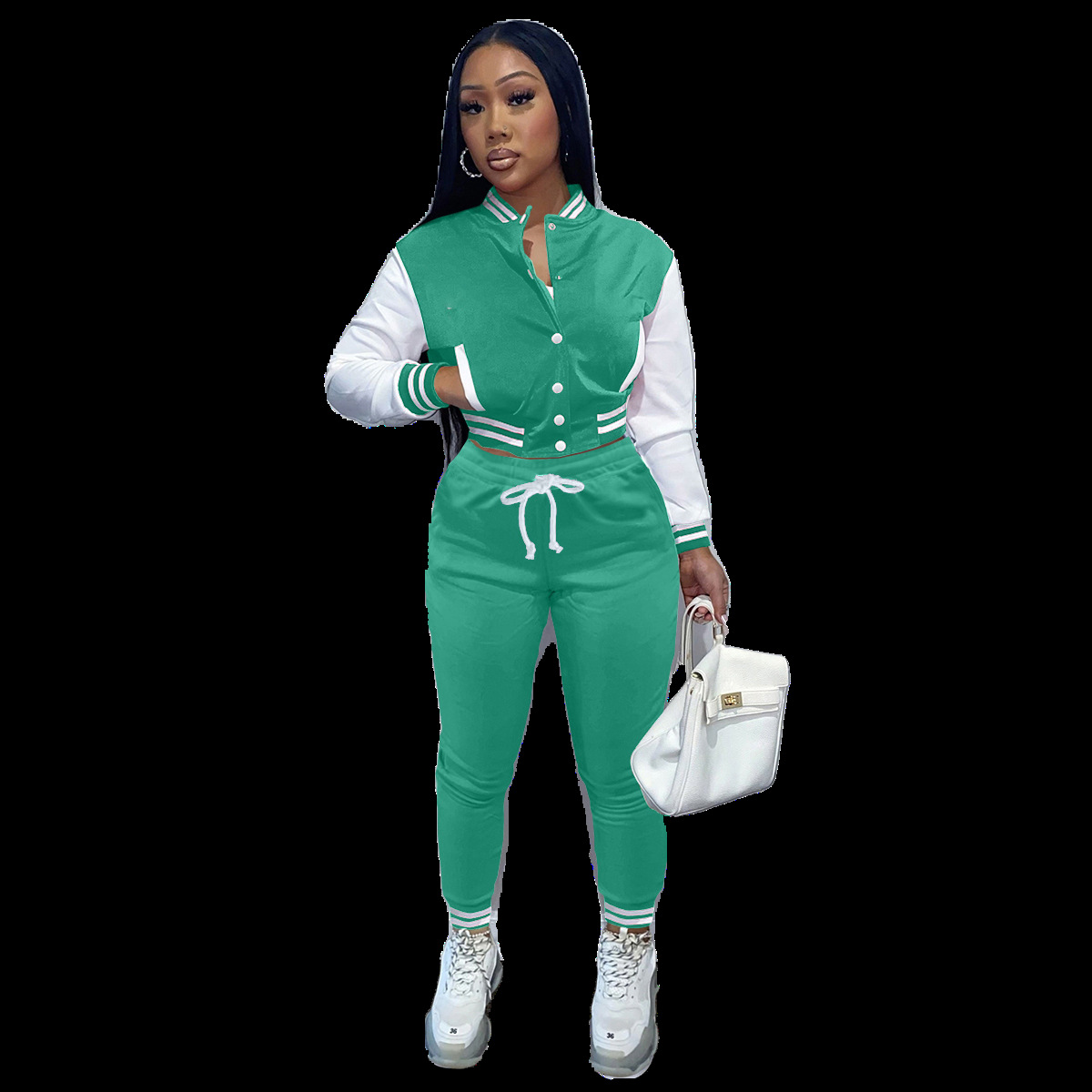 Stitching Jacket Single-breasted Baseball Set Wear Sports Two-piece Women's Clothing