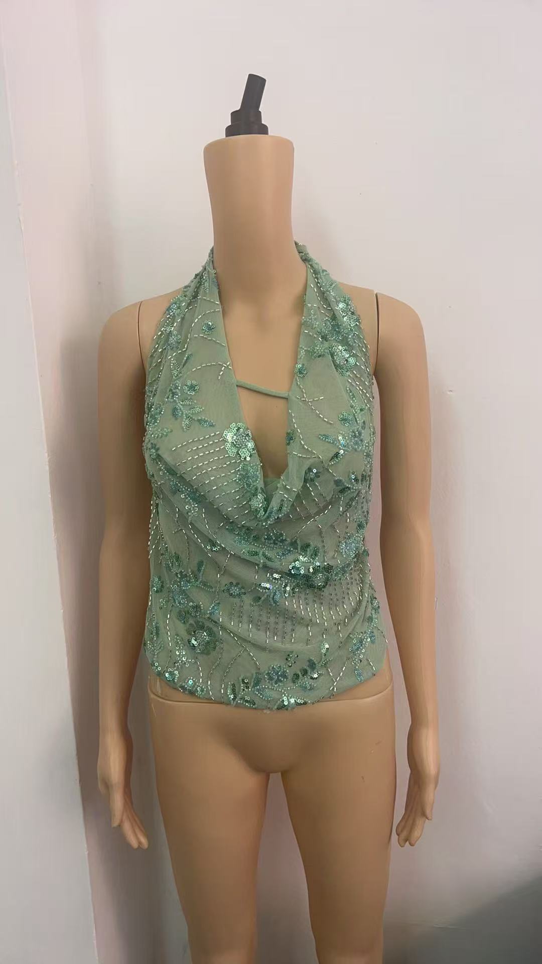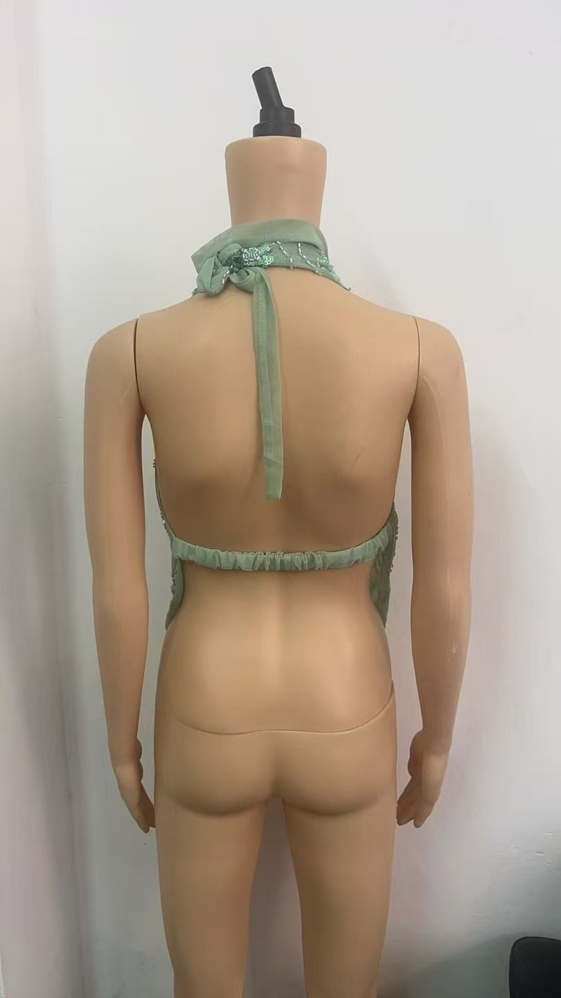 Street Hollow-out Sequin V-neck Sleeveless Halter Sexy Backless Slim Fit Top