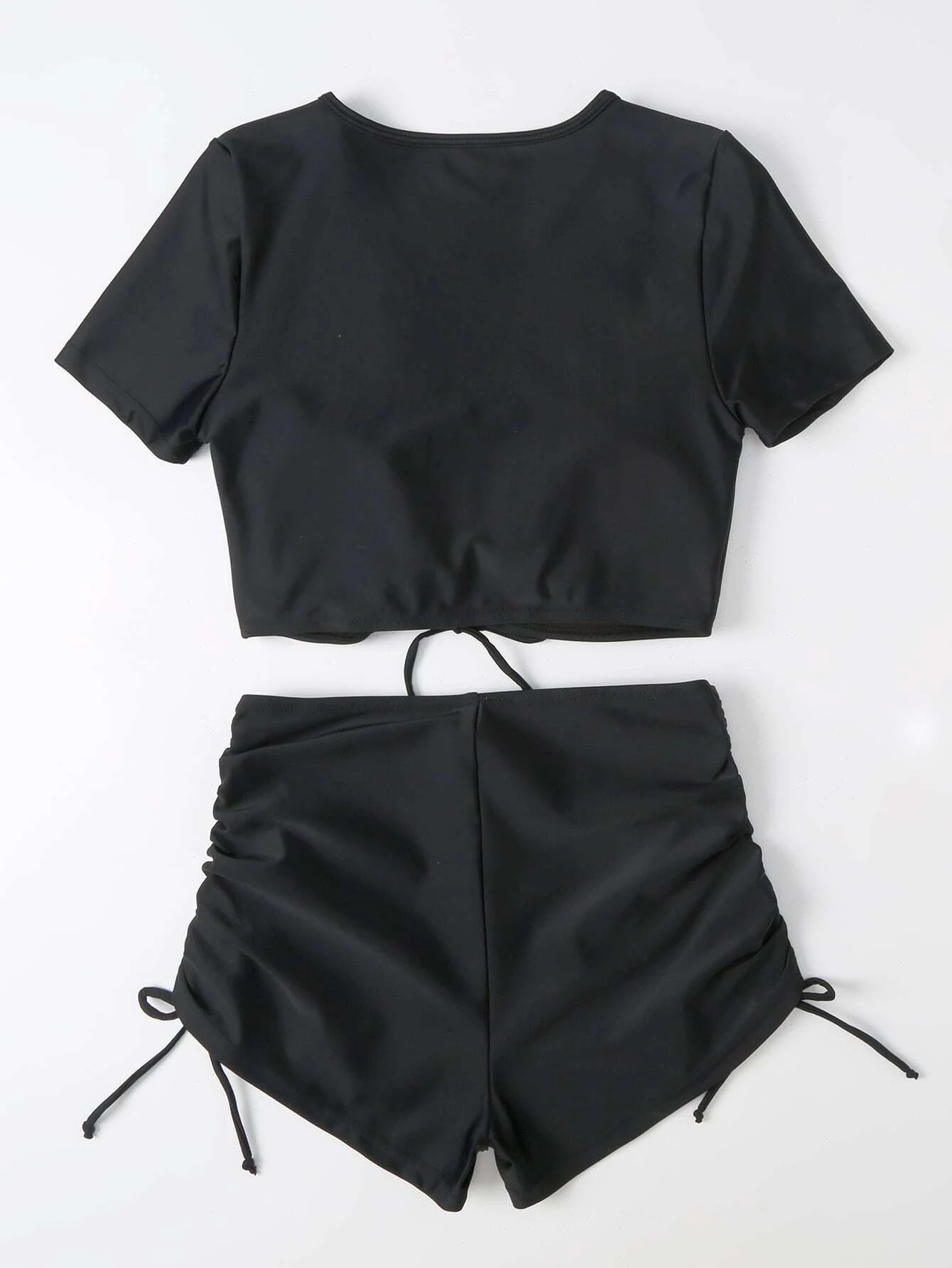 Swimsuit Women's Solid Color Sexy Short Sleeve Swimwear